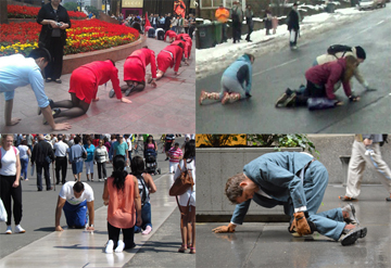 Word got round Twitter and Facebook and now people are crawling all over cities, in front of land marks, tourist attractions, especially in financial centres.