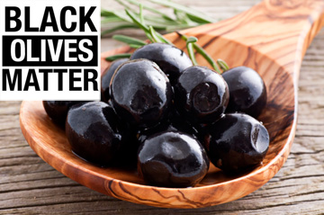 We must preserve black olives, because they matter. Black olives matter and they have for thousands of years so please don’t put a bullet in black olives, no, savour the taste and live a long life.