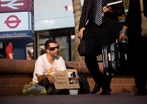 “After viewing the CCTV footage, we saw the thief come off a train. He then walked up to the blind gentleman who was sitting on the floor with a sign in front of him asking for money so he could eat some food. The MP looked around for a second then swooped down on the blind beggars