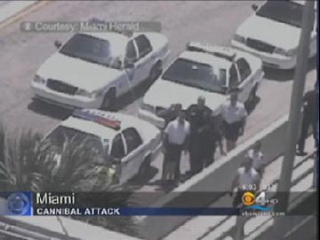 New Jersey, was the site of another incident where a man stabbed himself over 50 times then threw bits of his intestines at dismayed police officers. Even after pepper spraying him and tasering him countless times, it took twelve officers to subdue the man. Most recently, a Louisiana man, Carl Jacquneaux, ate part of a man’s cheek during a robbery before being finally being handcuffed by the police, and on Saturday, a homeless North Miami Beach man threatened to eat police officers who told the man to stop harassing customers at a local market.