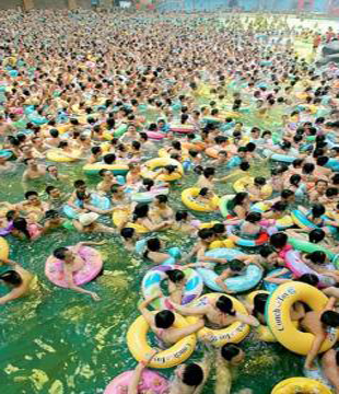 The Chinese swimming pool in the Yao Stink district is able to accommodate 230,000 swimmers at one time and on Tuesday was at low capacity of just 47,000 eager swimmers.