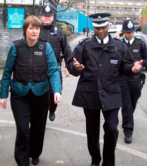 During the high security visit by Senior Deputy Commissar of the Labour Party, Harriet Harman, the Comrade in arms with Supreme Unelected Comrade Gordon Brown, was protected by a phalanx of thirty Stasi Police officers.