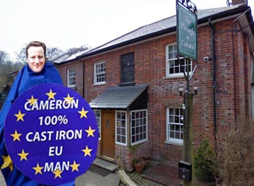 According to witnesses, the pub crowd were chanting for a referendum on the EU at the chillaxing Cameron when he whipped it out of his underpants and started shouting “Never, never, never!” before storming out in a huff with his wife Samantha and daughters.