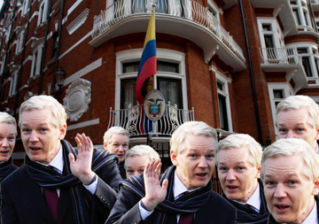 3) On the hour of his exit from the embassy, 10,000 exact replicas of Julian Assange turn up in the street. What are the cops going to do, arrest every single one of them?