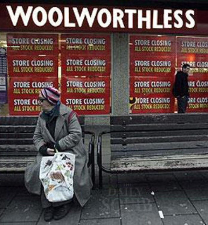 Shoplifters from all over the UK congregated outside the Woolworths flagship store and conducted a silent candle lit vigil yesterday. As a gesture of appreciation to Woolworths they converged on the store and cleaned it out completely, including the light fixtures and shelving units.