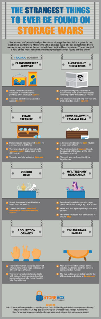 Whether valuable or not, it’s safe to say that there has been a fair amount of slightly unusual items found within these storage units. It’s hard to tell just exactly what’s inside with just a quick glance, and occasionally there will be something that shocks and surprises both the audience and the storage hunters themselves.