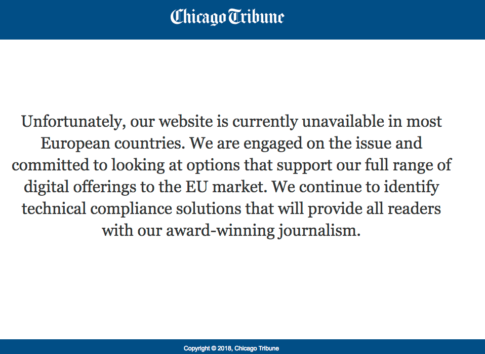 Shutting down EU operations however does not protect web companies because the EU law applies to to EU citizens wherever they are in the world, therefore these websites that have shut out EU users within the EU can still be punished by the EU.
