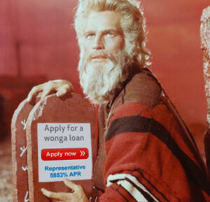 6. Thou shalt kill if necessary to pay back your Wonga loan. It’s either some other poor bastard or you.