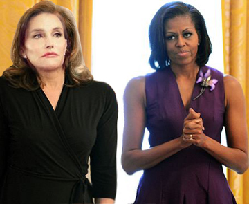 Caitlyn Jenner, despite having male chromosomes and a male bone structure still has not had the full de-masculinising operation where doctors will remove his male genitals completely, but neither has Michael Obama, so the two were like birds of a feather during the visit and got on like a Frisco bath house on fire– almost inseparable.