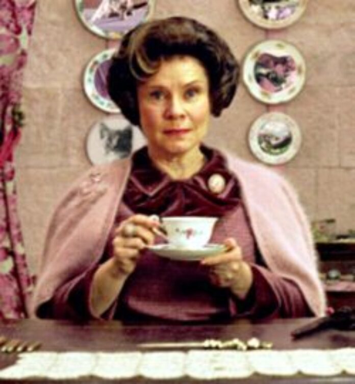 Special taxation and examination rule maker, undersecretary Dolores Umbridge, was on hand to collect the cheque from the ailing fantasist living in cloud-cuckoo-land, JK Rowling.