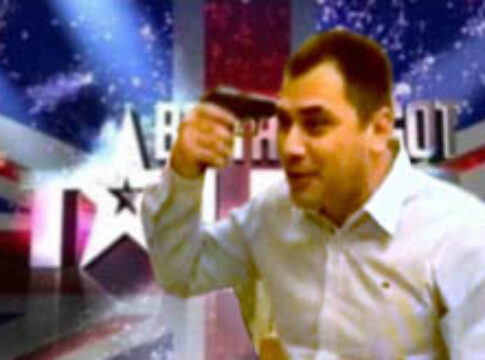 This may have happened on television. This was live. The image is of a man playing Russian Roulette on Britains Got Talent.. And it doesn't really matter if you beleive me, because i have the video on my hardrive.
