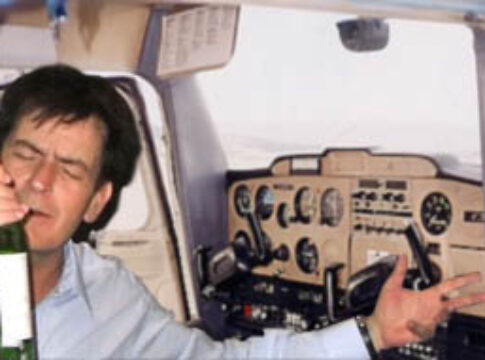 The actor’s long suffering flight instructor recalled some of the lessons: “First we go through the preliminary checks, then once we’re up in the air, Charlie gets the booze and drugs out. He snorts on the dashboard, then downs about six or seven bottles of red wine, and by that time we’re ready to land. Last week he brought up two whores for some in-flight entertainment. Sometimes, the altitude gets to him and he has one of his tantrums. After a few nosedives and loops the sound of the wheels screeching on the tarmac is a welcome relief. Good thing I always carry a parachute just in case though, eh.”