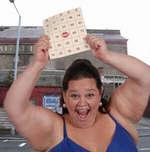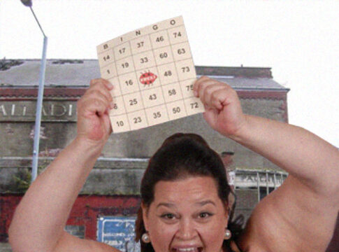 After studying the bingo winged ladies from Burnley’s numerous bingo halls, Lensley travelled to Blackburn but was brutally attacked during a mad bingo session at a dilapidated hall.