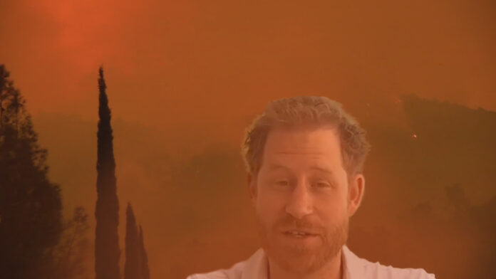 “As you can see, the view from here is wonderful, it is a sort of smoky orange colour, haven’t seen the sun in weeks, funnily enough, my hair seems to blend into the orange smoke very well. The other day I was sauntering in the garden and Meghan came out looking for me because she had more demands, but I stood right in front of her in silence, and she walked past. Jolly good camo I say.”