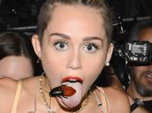 Will Smith who was in the audience with his kids recalled the event: “I was bored out of my mind sitting there watching Miley simulating sex and fellating a rubber thumb, when out of the light rig a giant roach came down. I immediately got into Scientology mode to analyse this curious happening. She had her tongue out and was flicking it like a lizard, when the roach plopped on her tongue. Then what she did was truly unbelievable. She crunched that thing like a taco, the mic picked it all up as she ate it up chewing a little as the juices flowed down her chin. Then she smiled and burped. That’s all I remember. I’m gonna need some serious auditing after seeing that. Phew! As for my kids, I’m gonna send them straight to Sea Org for this to get over what they saw. I’m angry. Real angry.”