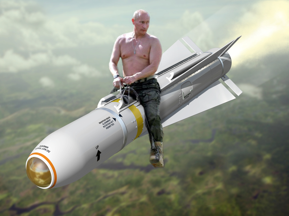 But, Vlad of my life, you can’t just copy our playbook, you gotta go further. I ain’t just talking about this nuclear alert jazz. Been there, done that, got radiation-sick over my own T-shirt. Shit, it was yours truly who advised Dick Cheney and James Baker to tell Mad Saddam in ‘91 that we’d pitch nukes at him if he pitched chems at our allies. And before that we were fixin’ for some mushroom cloud-laying just after 9/11 and during the Yom Kippur War and Cuban Missile Crisis.