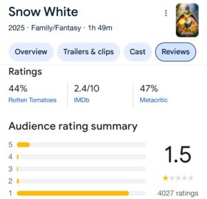 This is the 8:00 PM Snow White opening weekend showing near me. Nine whole tickets sold. pic.twitter.com/CuPYJZmysq