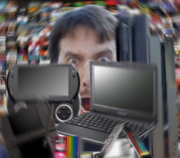 “What I saw that night will remain with me for the rest of my life. This guy had, iPhones, Android tablets, iPads, iPod touch, PS3, PS4, X Box One, Nintendo; hooked up was also a kindle book reader, a home cinema entertainment centre, a top of the range hi fi system, strobe lights and he even had a pc gaming system going all at the same time while he was still wearing his Google glasses watching about 45 screens. Somehow he just blew his brain. We found it in the corner under a pizza box with a half eaten pepperoni pizza inside. That’s when I just started gagging and puked on the man’s collection of remote controls and usb cables.” Officer Arnold Dietler of the LAPD recalled in the crime scene report.