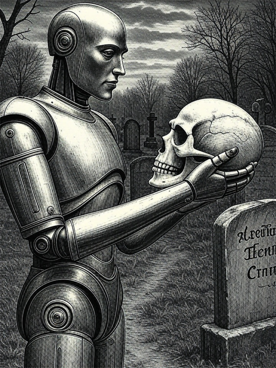 O strange and wondrous age! What cursed fortune hath befallen me, that I should dwell in such a time as this, when brass and lightning conspire to speak as men? When artificial superintelligence seeks thine outrageous misfortune. Verily, I know not if I dream or if the world itself hath gone mad.