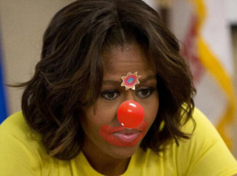 Mrs Obama stepped out to the High School graduation stage wearing a full on clown outfit, then proceeded to clown around even squirting the principal with a fake flower on her lapel.