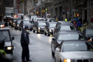 As the funeral cortège snaked through Manhattan Village on Friday, liberals threw pieces of stripped bacon at the procession in honour of Joan’s famously vulgar humour.