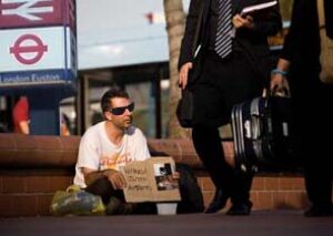 “After viewing the CCTV footage, we saw the thief come off a train. He then walked up to the blind gentleman who was sitting on the floor with a sign in front of him asking for money so he could eat some food. The MP looked around for a second then swooped down on the blind beggars