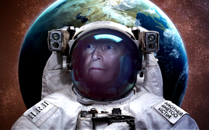 In a first for any #metoo victim, Prince Andrew, the former royal, was blasted into space two days ago, the palace revealed today in a press report.