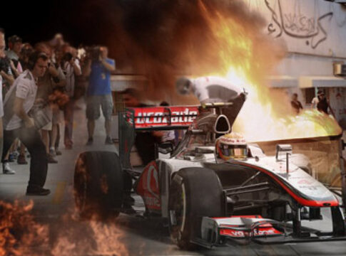 “I’m very happy to be alive. I was just coming through the first chicane when Schumacher took a tank shell head on splattering him all over the track like a watermelon. Then Barichello caught some shrapnel but I think he got through the burning wreckage. As for the safety car, well, it’s safe to say that it didn’t survive the first lap,” Jensen Button told Sky news.