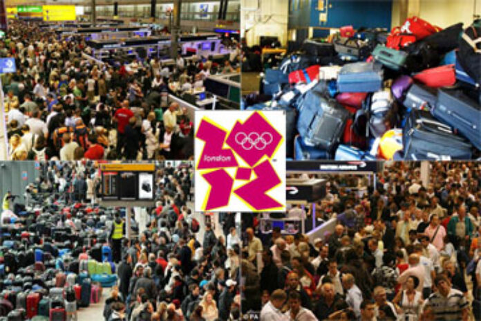 Instead of it taking four hours for each and every Olympic visitor to go through UK immigration border control , Olympic fans will now be able to watch a bit of track and field maybe or check out the synchronised swimming team all from the comfort of Heathrow airport.