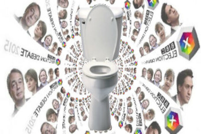 It’s over, and what a mess. Farage is around the back having a post debate ciggie, Miliband is stuffing a bacon sarnie up his flared nostrils after splurging too quickly, the Green candidate is talking gibberish in a corner and the SNP matron is planning the next battle of Bannockburn whilst admiring her hairy forearms.