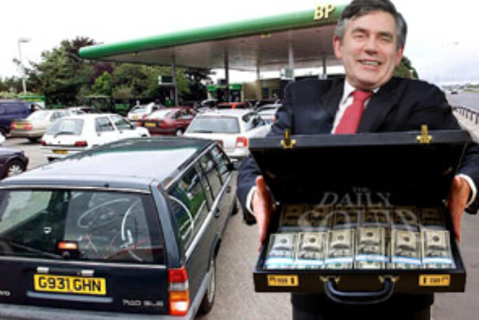 With eighty pence from every pound going to the British Soviet Treasury in fuel tax and duty, Comrade Brown is urging more panic at the pumps.