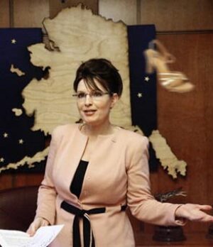 The visibly distraught Governor Palin was then seen throwing the shoes back telling the woman: “Don’t throw me these cheap freakin’ dimestore shoes!”