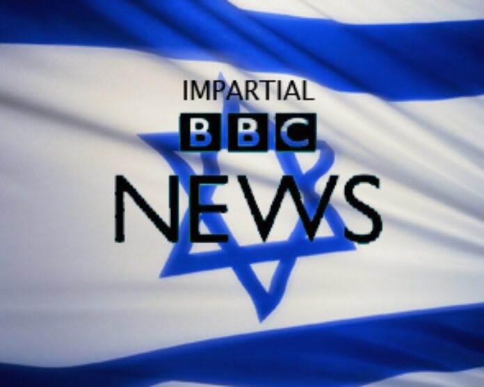 “The BBC news logo will be changed from Monday. It will incorporate the design of the Israeli flag and our news broadcasts will also start with the playing of the Israeli national anthem. Thank you for paying our huge salaries with your TV Licence so you can have an impartial news broadcaster,” a BBC announcer told audiences last night.