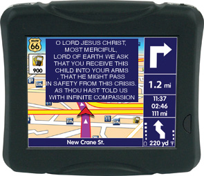 The prayer said by the sat nav system installed in all Toyota cars is delivered by a practising vicar, although depending on religious proclivities, the prayer can be adjusted to Islamic, Hindu, Jewish and even Church of England faiths.