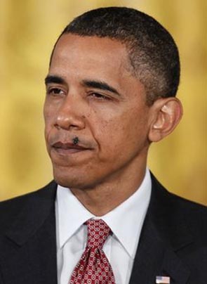 The president was speaking about the Affordable Care Act and the New Patients Bill of Rights in the East Room of the White House in Washington when the bluebottle fly landed on his cheek. Hillary Clinton, who was standing beside the president struck immediately and irradicated the problem fly much to the amazement of the crowd of reporters.