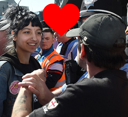 “I was going to first kick her in the head for being a paki scum, but when I looked in her eyes, I fell in love. She smiled at me, and I thought to myself, why am I being such a racist twat? Everyone in this world is just born the way they are and we should let people exist even if their skin colour is dark like dirt,” EDL leader Ian Crossland, told the BBC after the march.