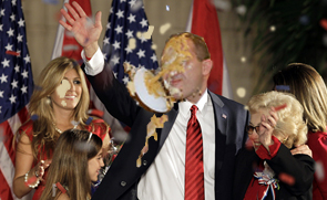 “Texas congressman, Doug Rheinhardt, went straight for the barbequed rib. Then when he ate his fill, with meat juices streaming down his chin, he picked one greasy morsel up and threw it at a Democrat standing near the punch bowl. That set things off, we even had Newt come up to a Dem and slam a trifle in their face. The Liberals gave as good as they got though, some were slapping macaroni cheese and cornbread onto a Tea Party representative’s back,” Peter Newtrich, the Republican Colorado congressman, told NBC news.