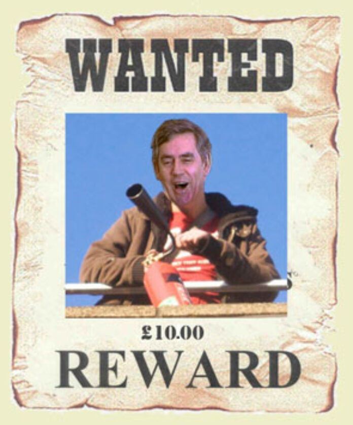 The Daily Squib is offering a £10.00 reward for information leading to the the arrest and prosecution of the thug involved in the throwing of the fire extinguisher from the roof of CCHQ on Wednesday.