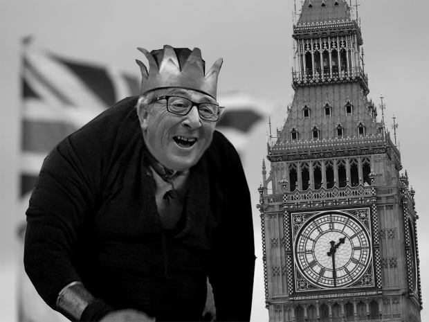 In New Palace Yard, 200 parliamentary staff watched the bell bong, as the Hunchback of Notre Dame, Jean Claude Junckimodo, swung from the ropes leering manically and wearing a fool’s crown on his deformed head whilst waving an awful blue flag with some ghastly yellow stars on it.