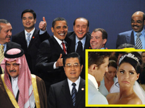 Some of the assembled world’s politicians who attended the summit included: Dmitry Medvedev, Angela Merkel, Barack Obama and Silvio Berlusconi, who were very concerned for the ailing celebrity couple.