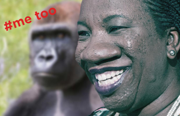 Arriving in the lush green hills of Uganda in deepest Africa, Tarana Burke, the #metoo founder funded by George Soros has come on a fact finding anthropological/biological study on the relationships wild animals have with each other.