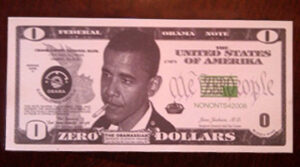 Ordinary Americans were generally enthusiastic about the announcement that the new zero dollar bills with Obama’s head plastered all over them would soon be available.