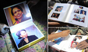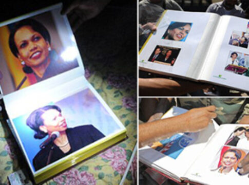 Rebel fighters sifting through one of Gaddafi’s many palaces have uncovered a treasure trove of material idolising Condoleezza Rice.