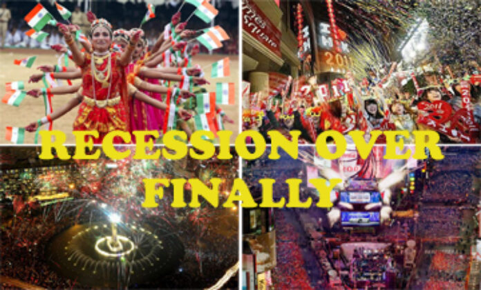 Consumers all over the world rejoiced: “We’re out of the recession. I feel like a black cloud has been lifted from the land and I can breathe again. I can spend, spend, spend, again without the old fear creeping around the corner for awhile. I think I just had a multiple cash orgasm all over the shopping mall,” Dana Kurvinski, 23, from Daytona Beach, Florida told CBS.