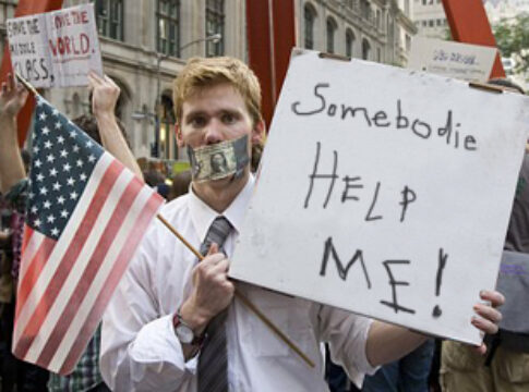As the morbidly vapid shuffle around holding their poorly written placards, a wave of laughter spreads from the tower blocks surrounding Wall Street, it is the sound of the bankers creaming off more spoils for the day. It seems like it’s another regular day in the business district, and the feckless fools pretending to protest for a cause are simply flailing around in the dark. Viva la non-Revolución.
