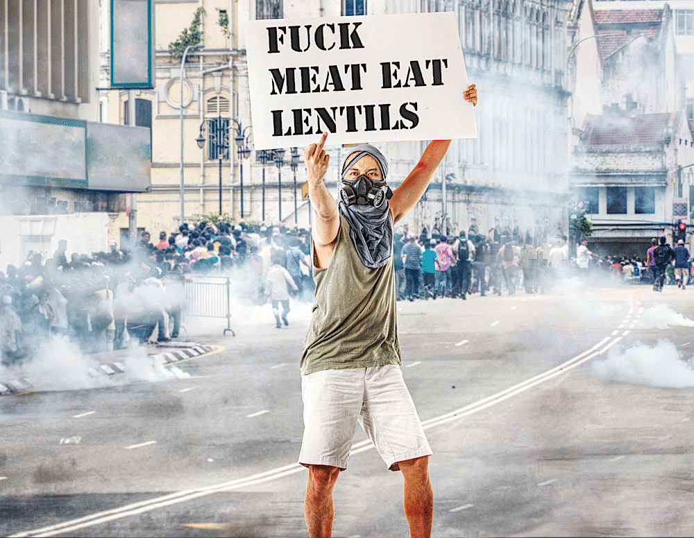 By that time, a mob of vegans converged from the east, and bundled into a kebab shop where they screamed at the top of their voices at the staff.