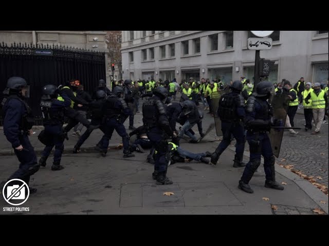 It is close to Christmas in Paris, and the trees have been decorated with lights on the Champs-Élysées, their juxtaposition of violence and protest leaves an uneasy duality. The decorations for Christmas, this time are burning barricades, exploding vehicles, and cowering policemen.