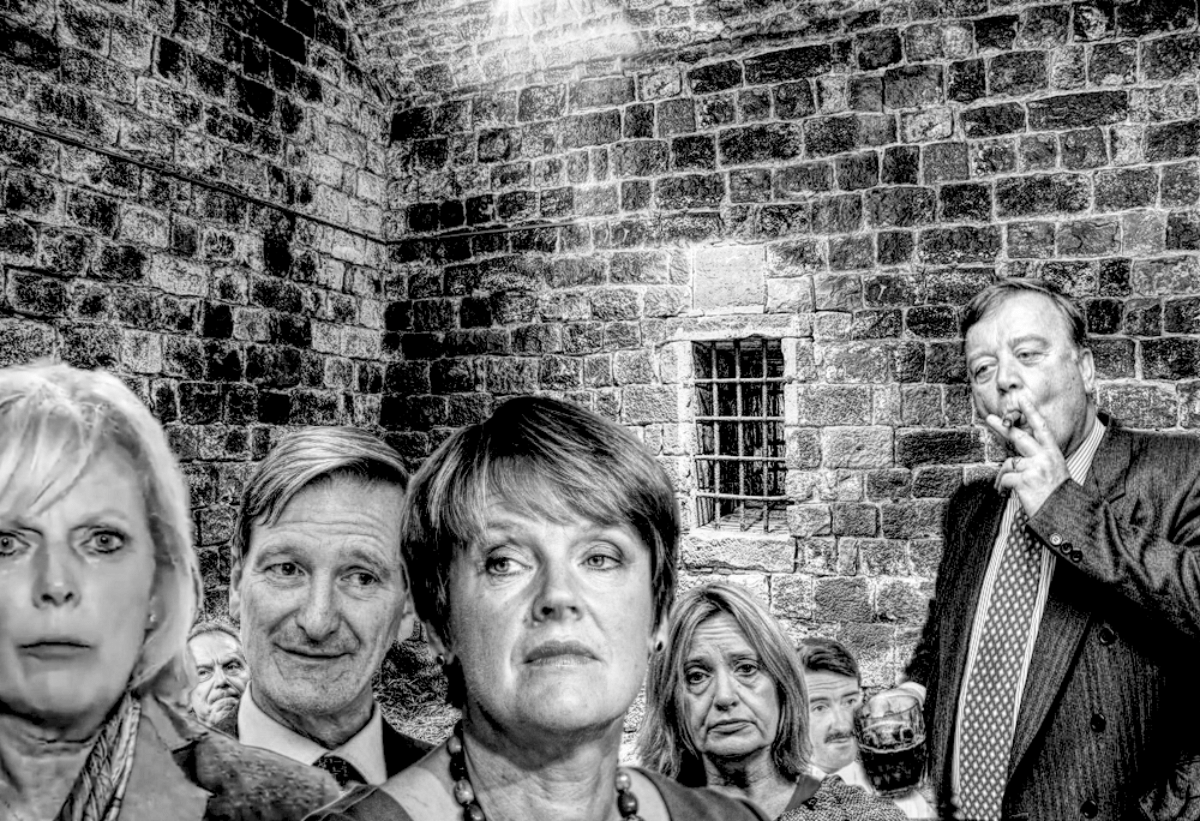 “When’s dinner served in this bloody place? Since we have been put here, all we get is some sort of measly mush. It’s not exactly Claridges is it? Bugger this, I’m so hungry right now I’m capable of eating one of the ladies (points a fat finger at Amber Rudd).