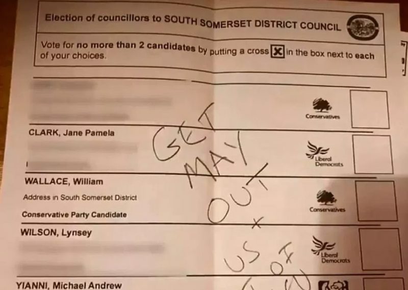 The anger is palpable, and too apparent with many voters choosing to spoil their ballots with anti-Theresa May statements, and to show their anger about the Brexit betrayal being conducted by Theresa May and her Remainer cronies.