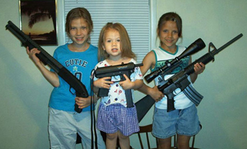 Hi I prolly will get alot of minuses for this but I consider myself to be an American patriot. I love my country and I believe we should fight for our rights. But we don't need to have all these guns they are killing people needlessly they are messing up our nation. No other nation in the world has this many guns what is wrong with our society? We drug our children with ritalin and go bour our business with assault rifles. If the cops have guns that is enough, those boys and gals keep us safe so the average citizen doen t need a gun. Please if you are a patriot put your gun down when you are in-country. I understand if we are fighting an enemy like the Taliban YES we need guns but no when you are in the U.S. gOD BLESS YOU ALL AND gOD bLESS aMERICA!!!!!!!!!